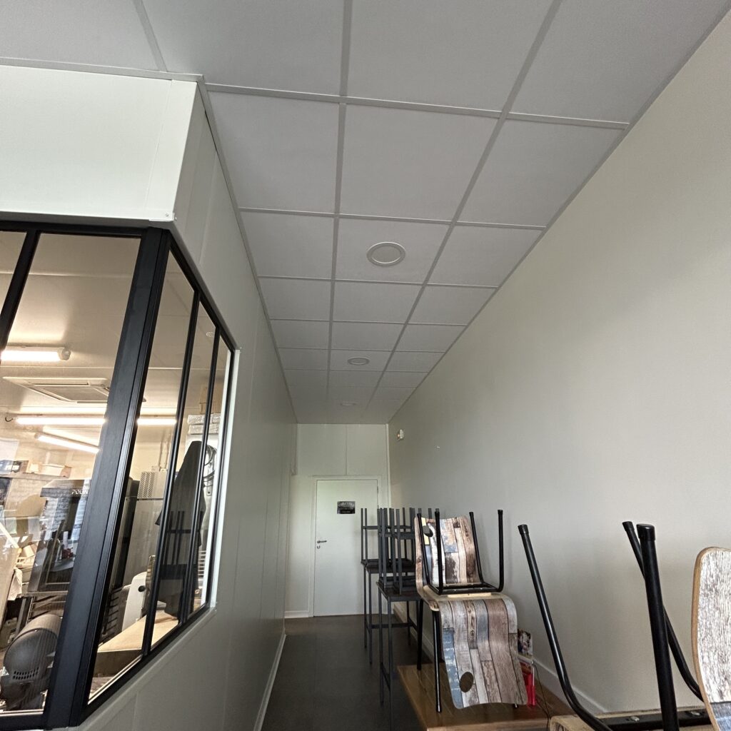 Restaurez les plafonds existants dans vos laboratoires ou unités de production en utilisant des lames PVC extrudées ou en dalles montées sur ossature.